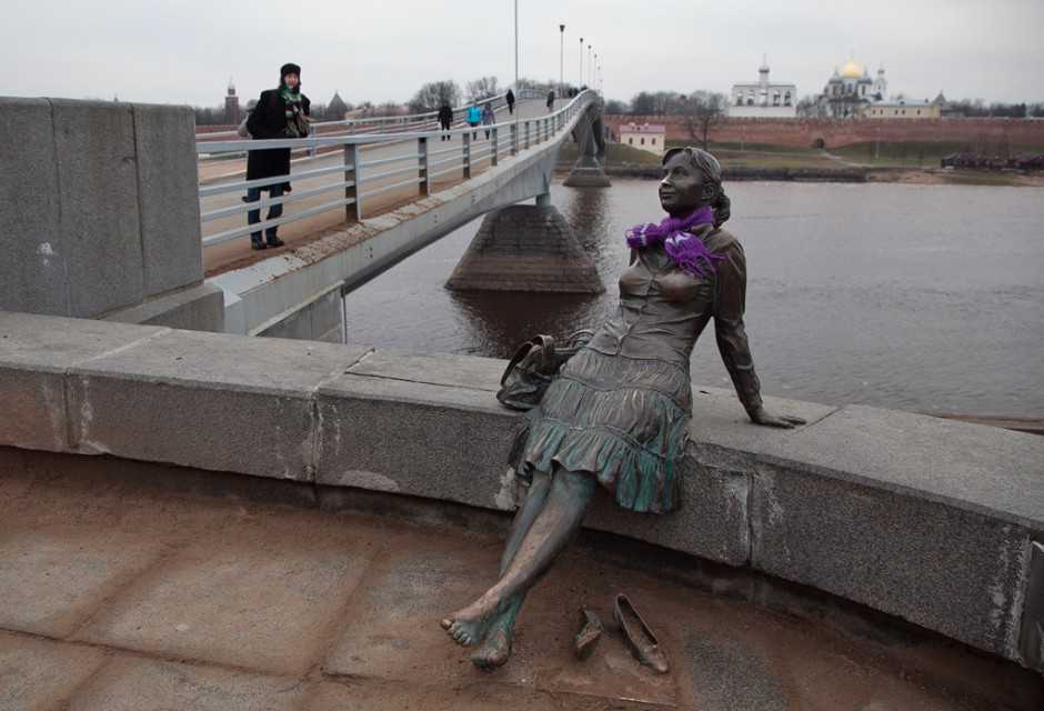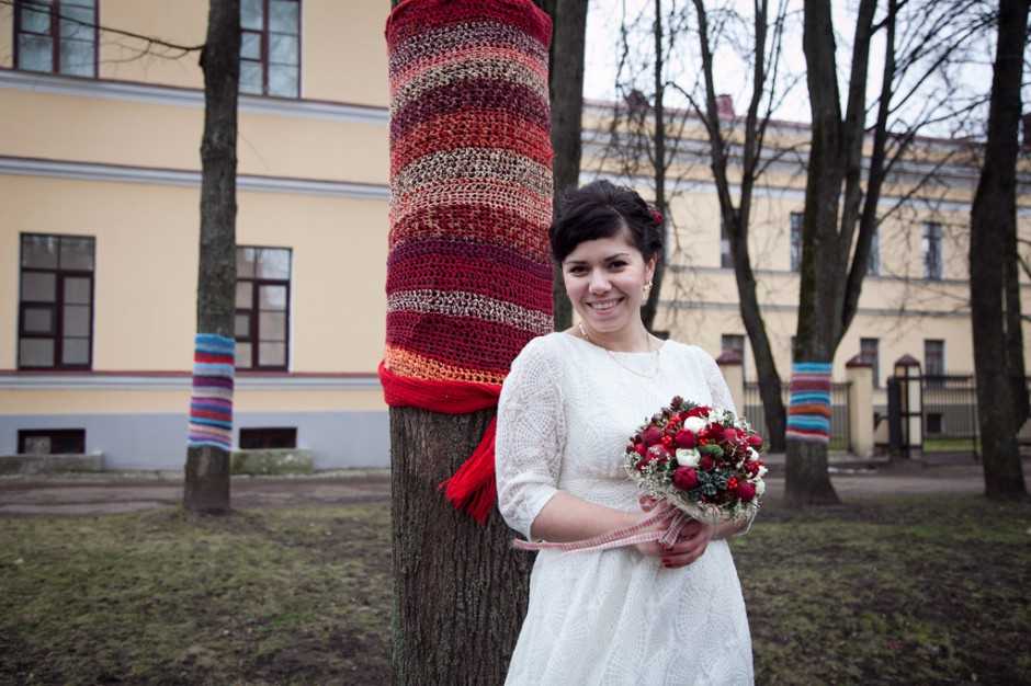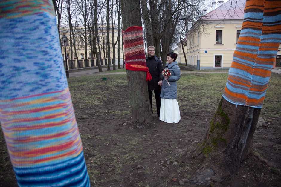 Примечательно, что к акции неожиданно присоединились молодожены Инесса и Алексей, повязав на одно из деревьев ярко-красный шарф. Возможно, зимой это станет новой традицией в Великом Новгороде? Чем не символ любви, тепла и уюта? Поживем — увидим!