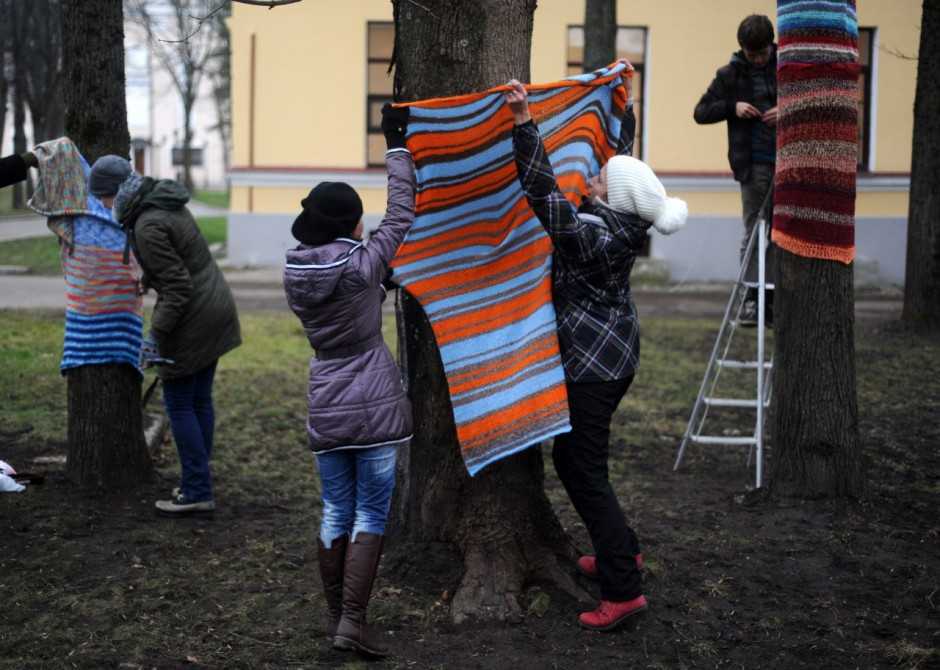 Видя, как при помощи пряжи преображают городские объекты, прохожие улыбаются, и такое искусство поднимает настроение. Активисты собирают единомышленников и наряжают парки и скверы, чтобы даже унылой зимой объекты здесь выглядели ярко и необычно.