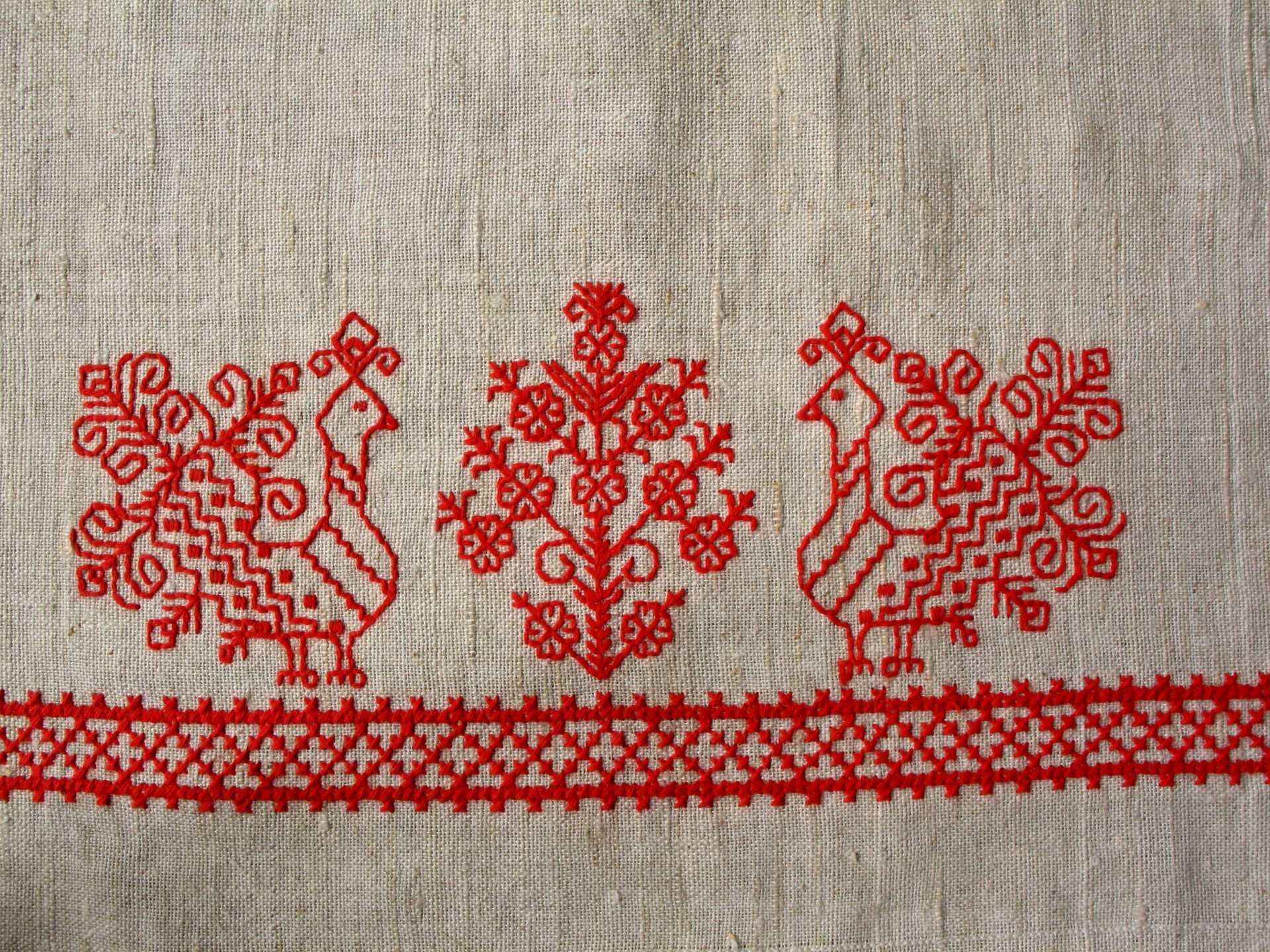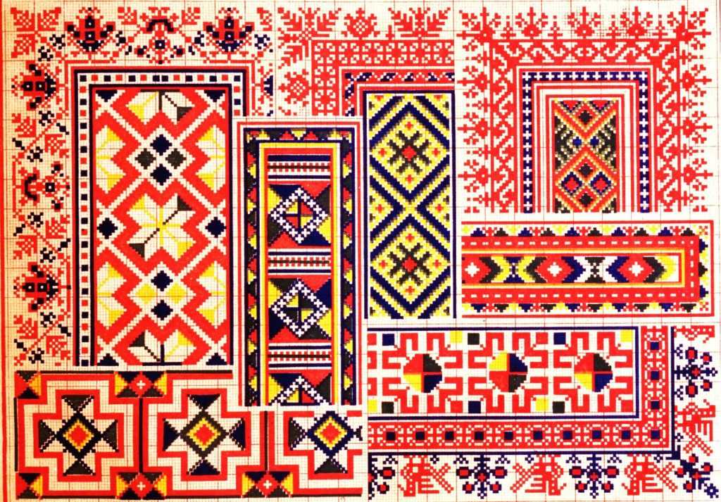 - Ромбики, квадраты, изображение восьмиконечных розеток, Х-образные фигуры и даже стилизованные зарисовки человека. Все это было характерно для ткачества, строчной, счетной вышивки.