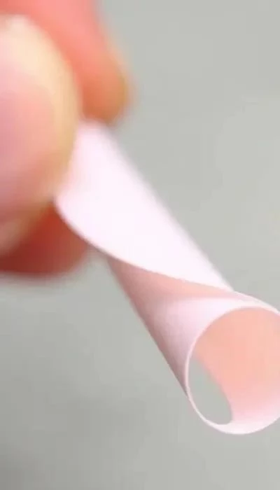 - Подготовка лепестков. Возьмите 6 полосок цветной бумаги (например, розовой или сиреневой) шириной 3-5 мм и длиной около 30 см. Используя инструмент для квиллинга (или зубочистку с расщепленным кончиком), плотно накрутите одну полоску, формируя тугой ролл. Затем снимите его с инструмента и дайте немного раскрутиться на ровной поверхности. Чтобы все лепестки были одинаковыми, можно использовать специальную линейку-трафарет с кругами. Аккуратно подклейте кончик полоски капелькой клея ПВА. Теперь сожмите получившийся свободный ролл с одной стороны, формируя элемент «капля». Повторите эту операцию со всеми шестью полосками. Это будут лепестки нашего будущего бумажного цветка.