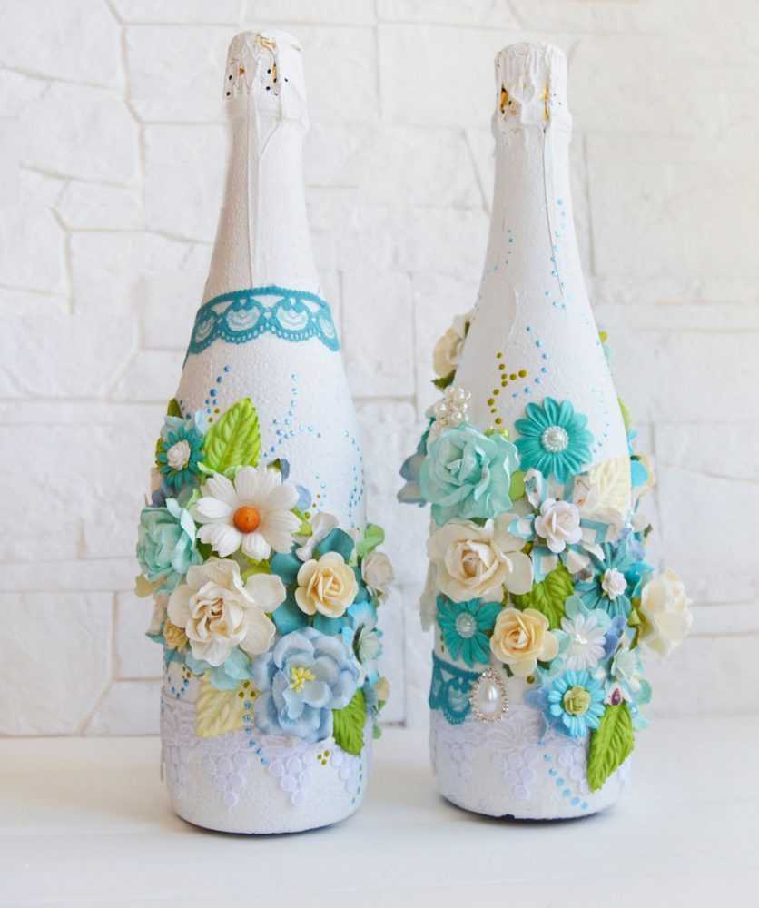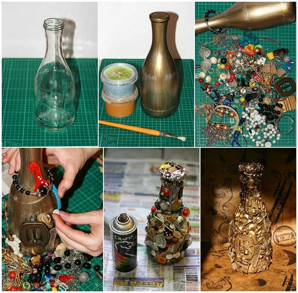 Бутылка, оформленная в технике декупаж в винтажном стиле