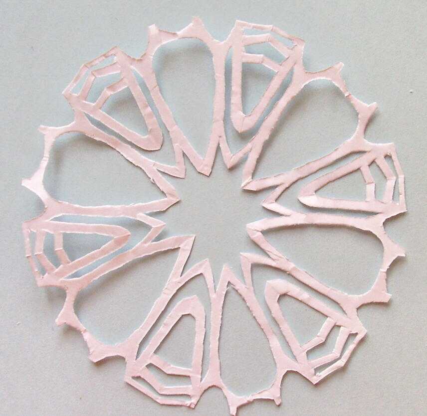 Очень красиво будет смотреться снежинка, если внутри лепестка у нее будет ажурный узор. Но старайтесь не делать слишком сложных узоров, так как необходимо учитывать, что вам нужно будет еще вырезать каждый лепесточек из фоамирана.