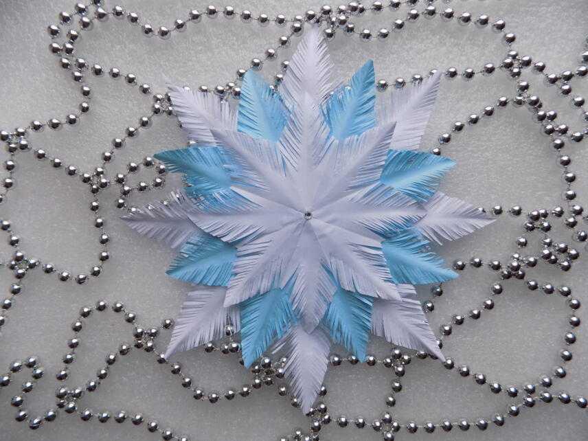 Готовые «капельки» следует приклеить на место срезанных направляющих. Оставляем нашу снежинку до полного высыхания клея