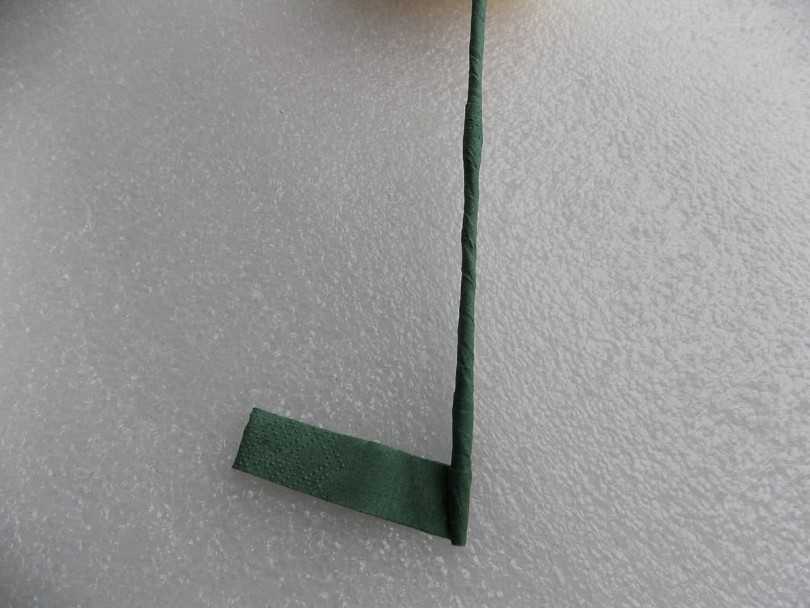 - проткните головки проволокой, а потом задрапируйте стебельки лентой, не доходя до конца 5 – 7 см;
