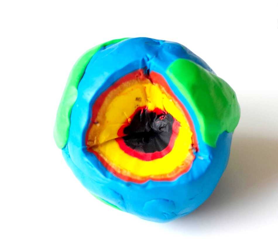 А чтобы рассказ был более наглядным и увлёк ребёнка, сделали макет Земли из пластилина в разрезе.