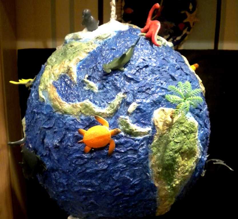 Глобус из пластилина готов. Теперь у ребенка на полочке будет красоваться настоящая модель Земли, сделанная своими руками. А в школе ребенок с легкостью перечислит названия океанов и континентов и покажет их по заданию учителя.