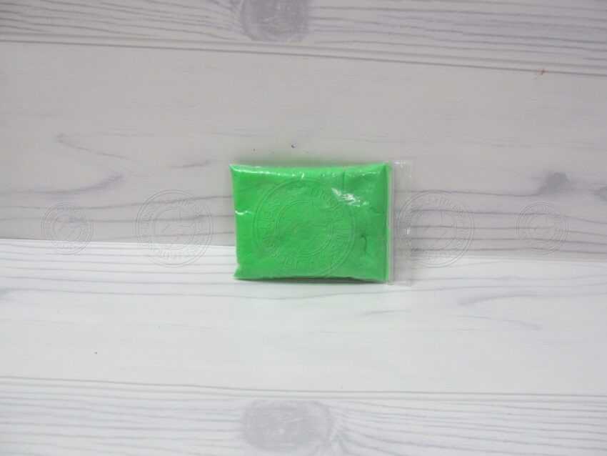 1. Достаньте из коробки зеленый пластилин и подготовьте рабочую поверхность для работы. Не обязательно брать много материала, если вы переживаете, что вам может не хватить. Размер поделки может быть и небольшим.