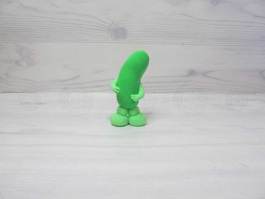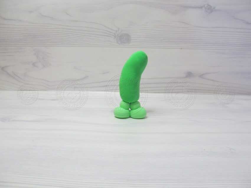 3. Самым простым будет слепить из того, что у нас получилось ранее форму огурца. По большей мере, это просто толстая колбаска, для получения которой надо делать движения ладонью взад-вперед