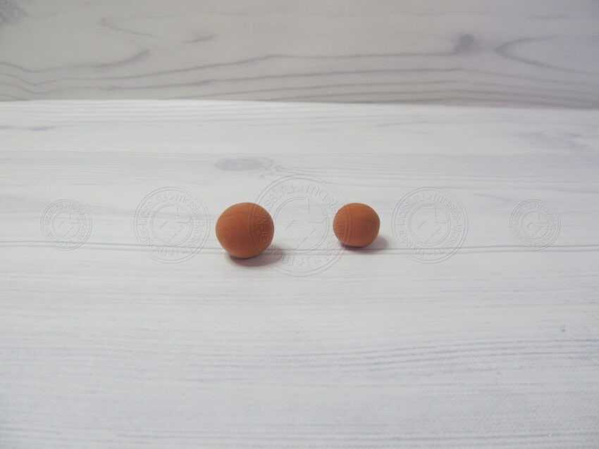 12. Отрываем от него два кусочка и превращаем их в шарики. Один из них должен быть меньше другого.