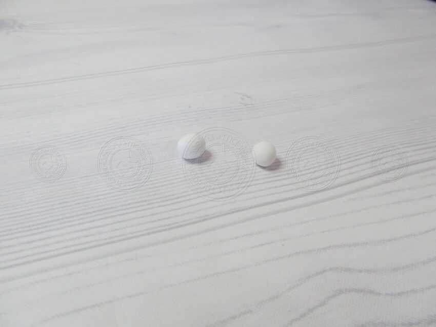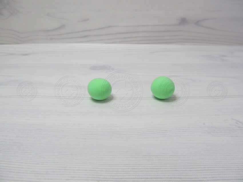 13. Тот шар, что побольше необходимо расплющить. Лучше всего воспользоваться твердым предметом, чтобы блин получится ровным. Вторую деталь мы поджимаем пальцами таким образом, чтобы вышла горошина с узкой стороной внизу.