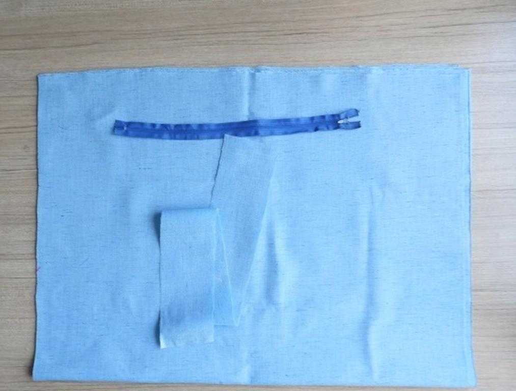 - Перед делается в нахлёст и строчка до середины, дальше делается нахлёст с другой стороны вплотную и строчка.