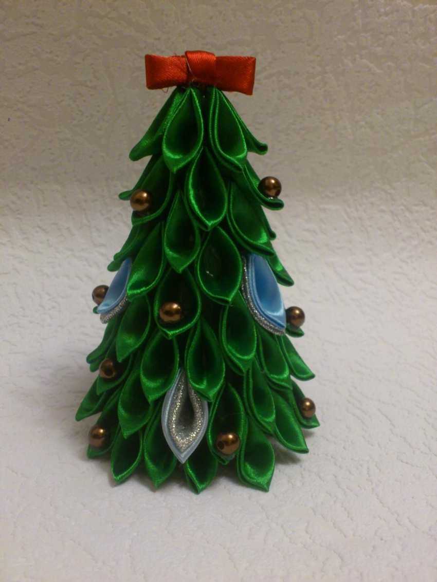 Самодельная елочка из лент, украшенная бантиками Техника канзаши пришла к нам из Японии. Изначально в этой технике делали украшения для волос, которые носили японки и китаянки. Иногда такие украшения превращались в настоящие произведения искусства.