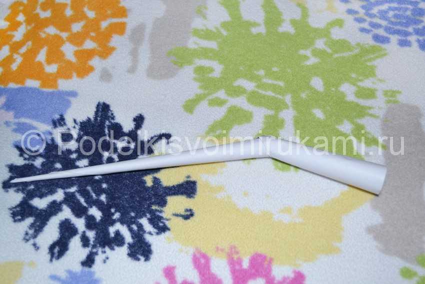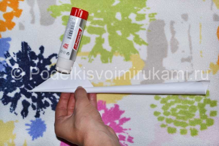 Итак, приступим. Берем лист обычной бумаги: складываем его так, чтобы у нас получился узкий равнобедренный треугольник по все длине листа. Далее обводим треугольник и вырезаем шаблон. Обводим по шаблону картон или плотную бумагу. Затем вырезаем и сворачиваем конусом своими руками. Узкий конец покручивая, чтобы получился замкнутый конус.