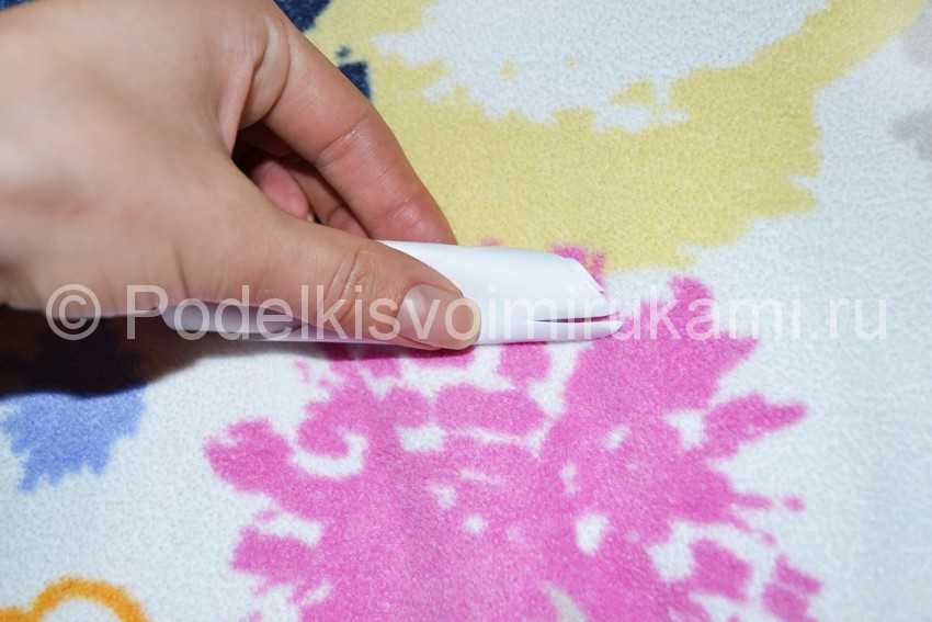- На бумаге рисуют шаблон будущей перчатки и сразу же вырезается.