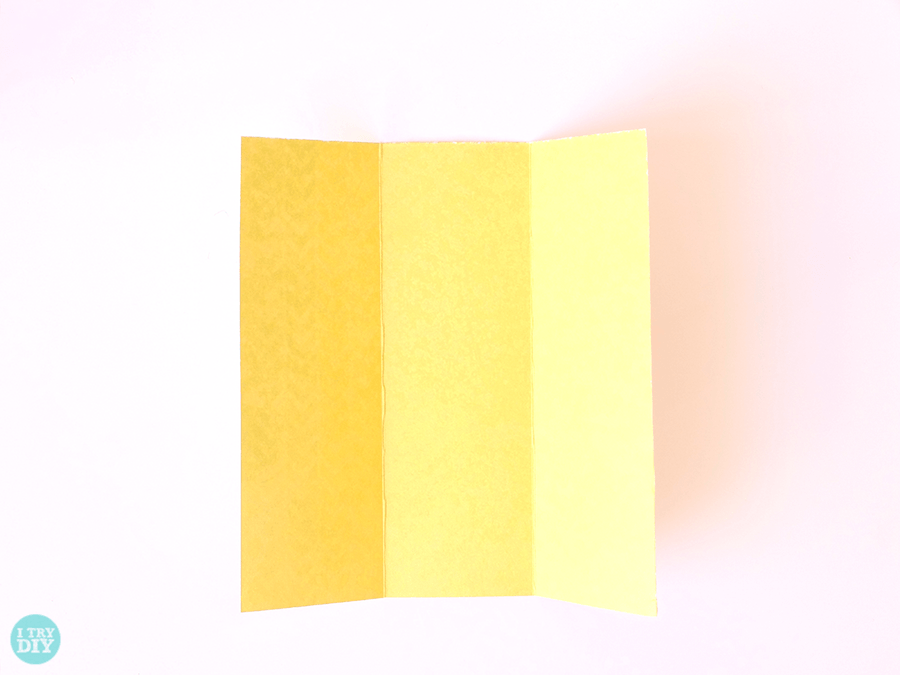 Хорошенько прогладьте складку и разверните бумагу. Снова сложите эту складку, но уже по направлению вниз. Расправьте бумагу.