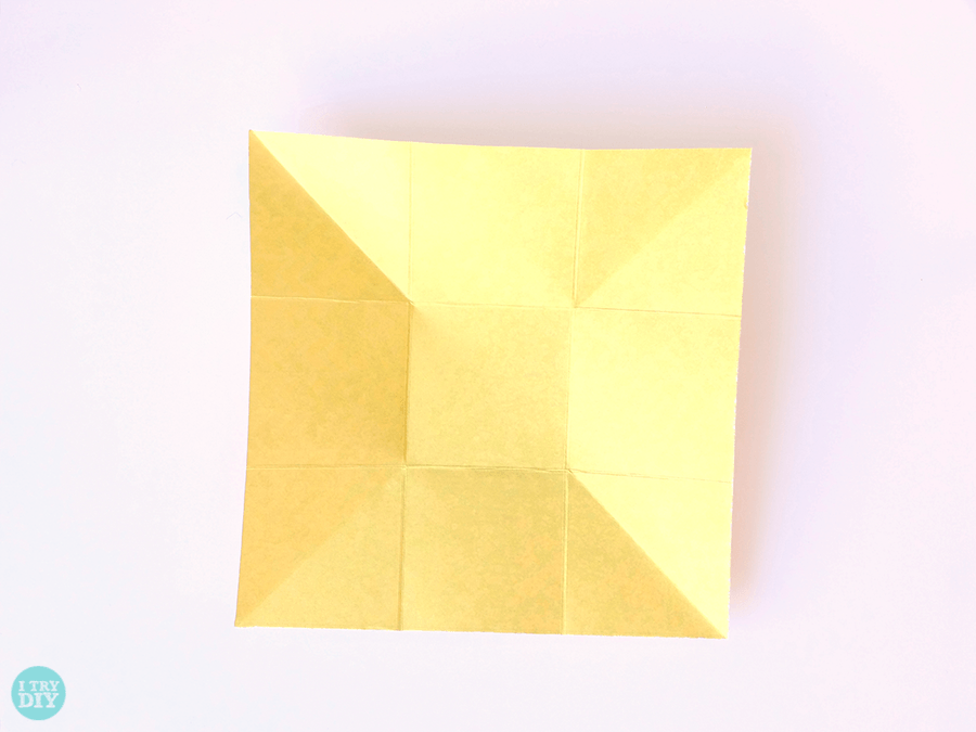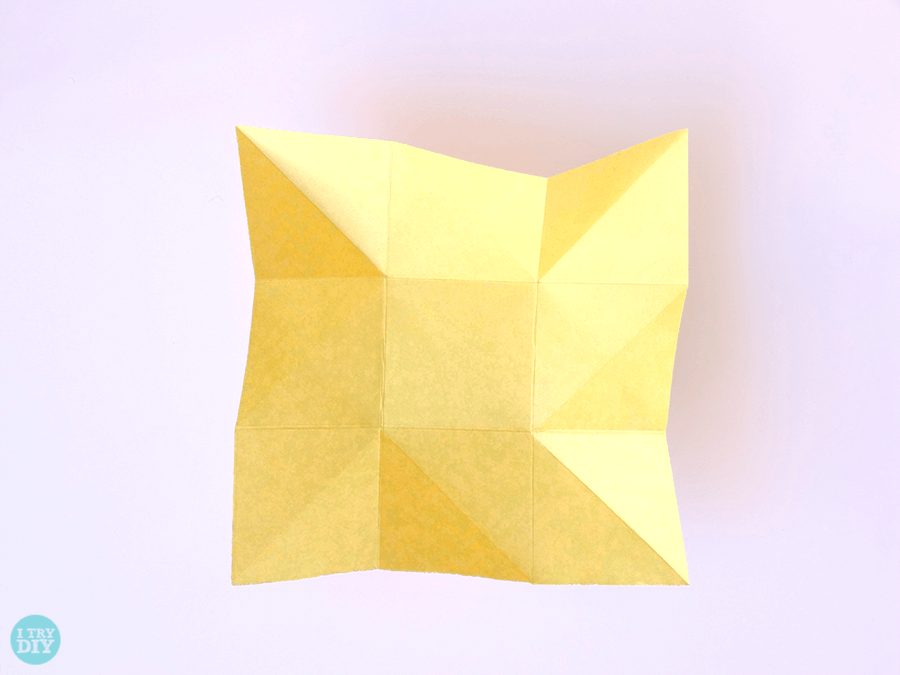 Загните к точке посередине остальные 3 угла. У вас должны получиться следующие складки.