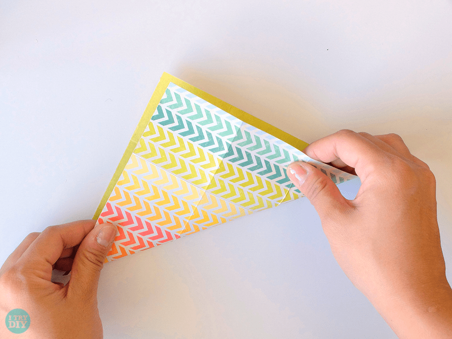 Для изготовления формы нужен лист двухсторонней цветной бумаги и цветной скотч. Углы листа сгибают, чтобы получить треугольник. Затем правую, левую стороны подгибают к центру, потом к центру загибают нижнюю часть. Уголки закрепляют скотчем. Получают очень красивую упаковку для денег, открытки или тонкой брошюры, ежедневника.