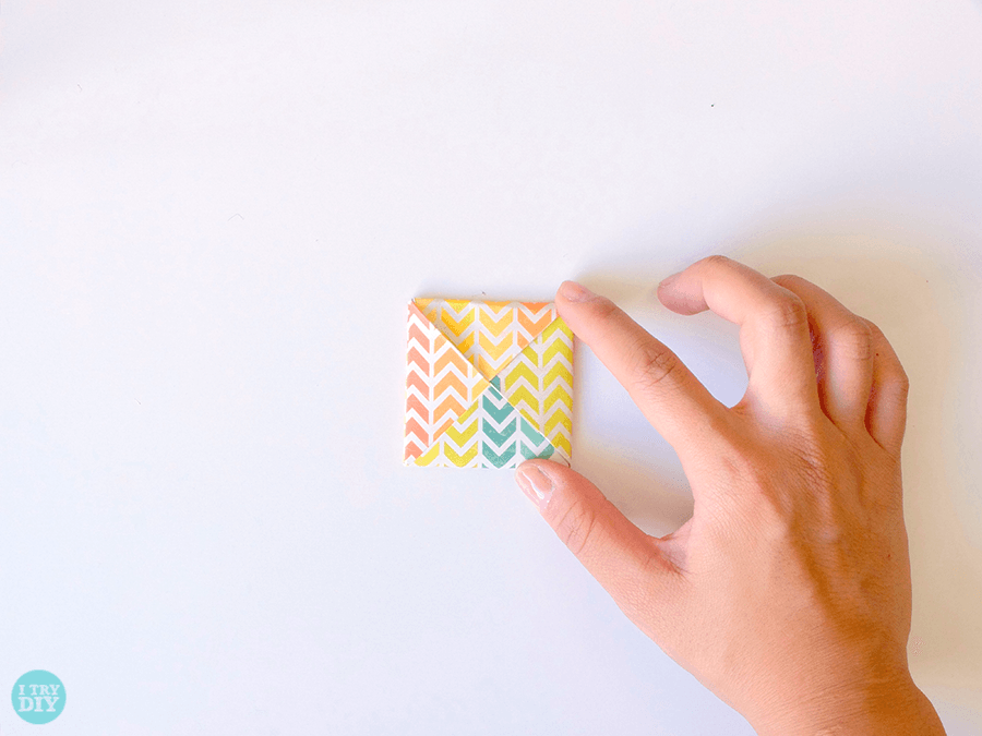 Повторите на другой стороне. Вы уже начинаете видеть, как формируется ваш оригами конверт для денег?