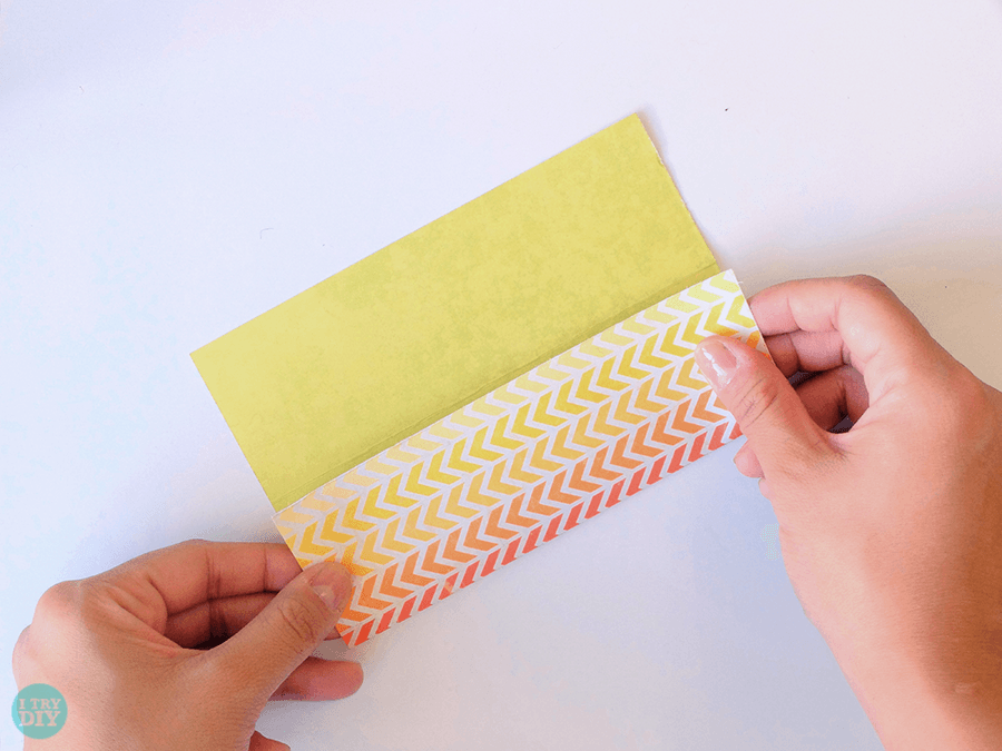 Начнем с прямоугольного листа бумаги. Мы применили узорчатую бумагу, чтобы наш оригами конверт для денег выглядел красиво и был плотным. Вы можете взять любую другую бумагу на ваш выбор, но помните, что именно от качества бумаги зависит окончательный внешний вид поделки.