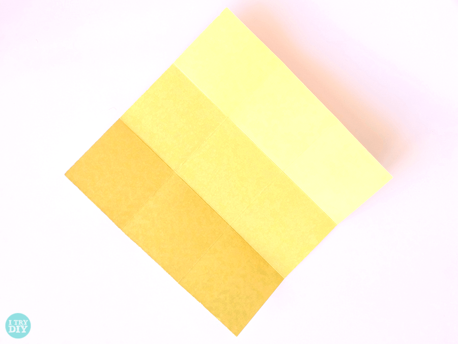 - Делят лист на 3 части, проглаживают сгибы. Разворачивают квадрат и снова сворачивают, получая 9 квадратов.
