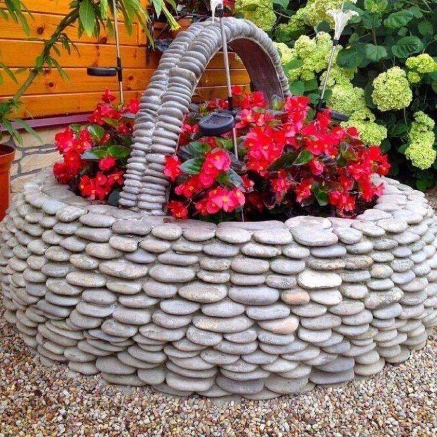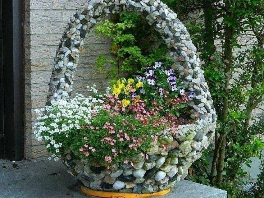 Клумба в корзине – оригинальная идея для цветника 82 фото