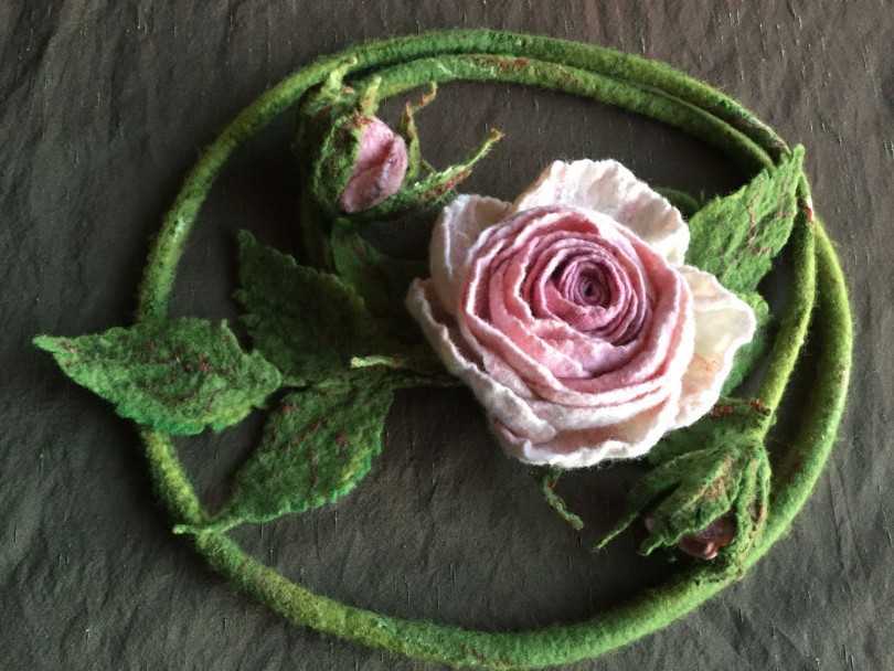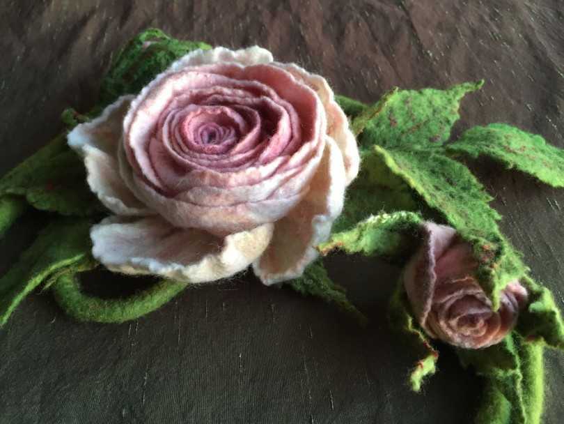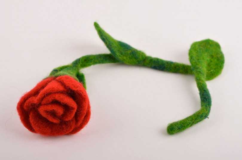 Такая роза станет оригинальным украшением заколки или броши из шерсти.