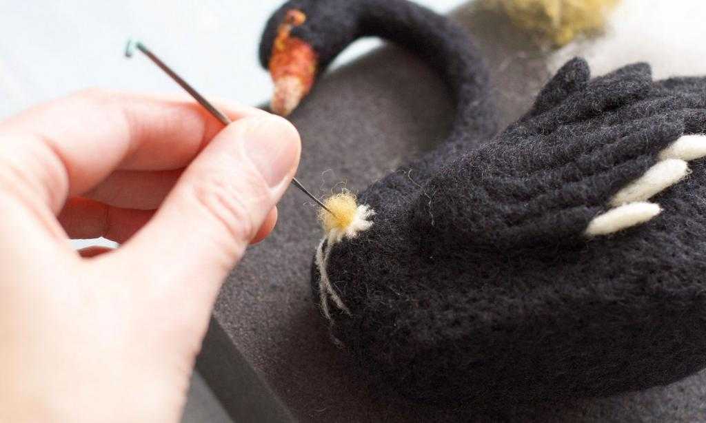 - Сваляйте шерсть, делая частые уколы специальной иглой.