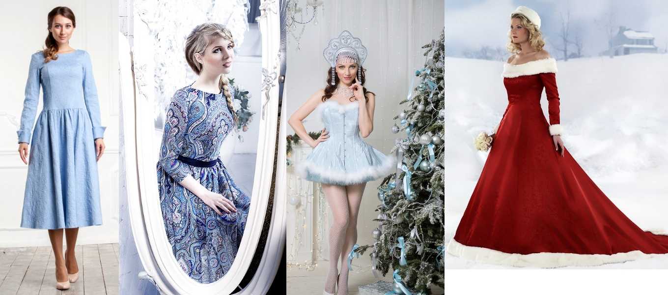 Под костюм снегурочки отлично подойдут разнообразные платья, которые можно дополнить аксессуарами