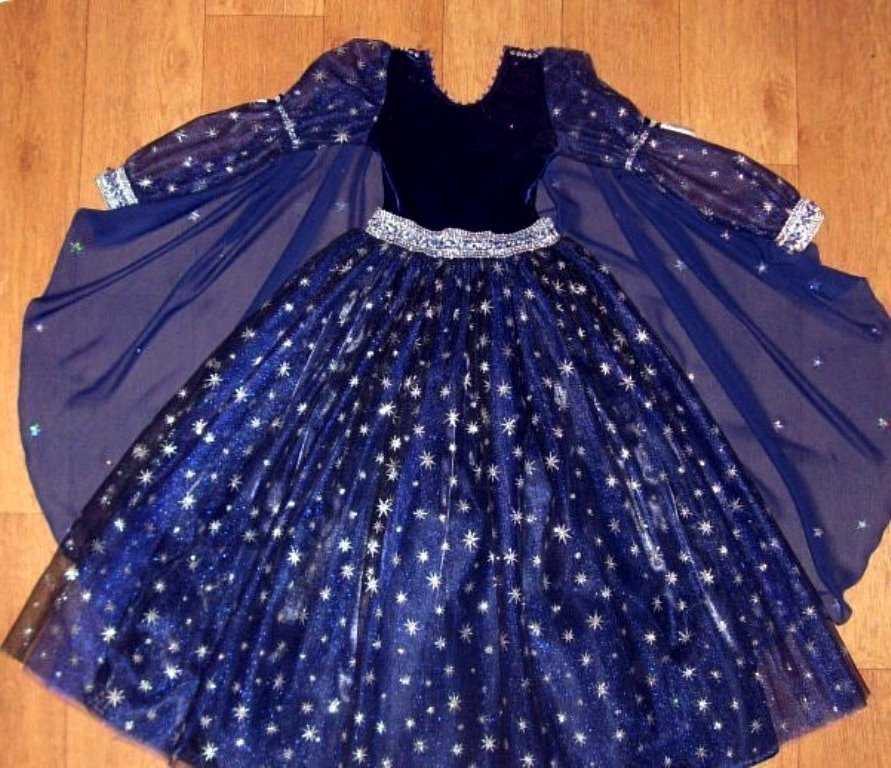 Накидка. Шьем к платью накидку из фатина или шифона со звездочками. Прикрепляем ее к платью: на плечиках и к рукавам в нескольких местах.