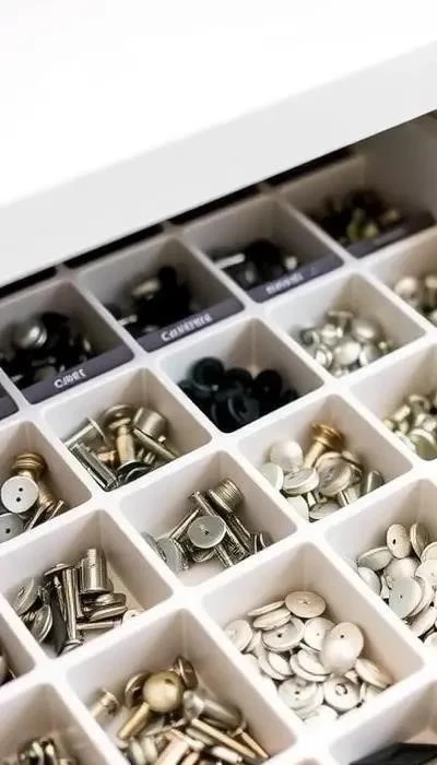 Оцените площадь: для небольших мастерских подойдут компактные органайзеры и подвесные системы. Учитывайте объем: большое количество фурнитуры требует стеллажей или модульных систем. Вертикальное хранение – оптимально для экономии места. RFID-технологии помогут отслеживать запасы.