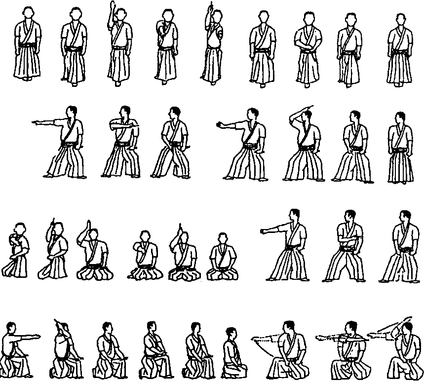 При этом важную Роль играют пальцы руки, удерживающей подготовленные к метанию сюрикены, – они осуществляют своевременную под- ачу (выдвижение) очередного сюрикена из ладони в положение, удобное для захвата оружия пальцами метающей руки. Наиболее важным в этом приеме метания является не сила броска, а координация движений, которая и позволяет покрыть “очередью” сюрикенов значительный сектор поражения.