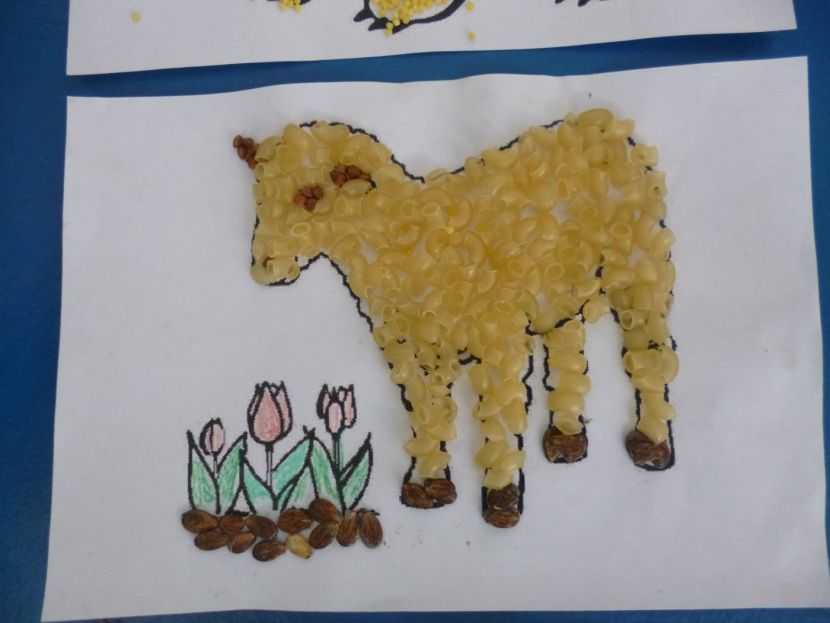 В следующей подборке фото представлены примеры детских поделок из круп и макарон в виде аппликаций.