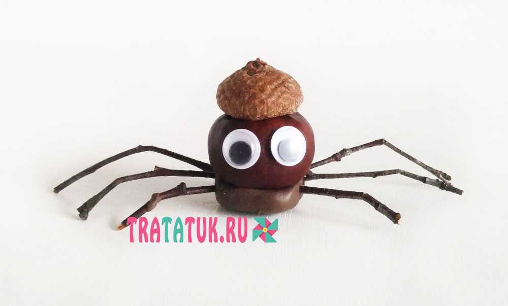 Осталось только приклеить глазки, шляпку желудя и забавный паук из каштана готов.