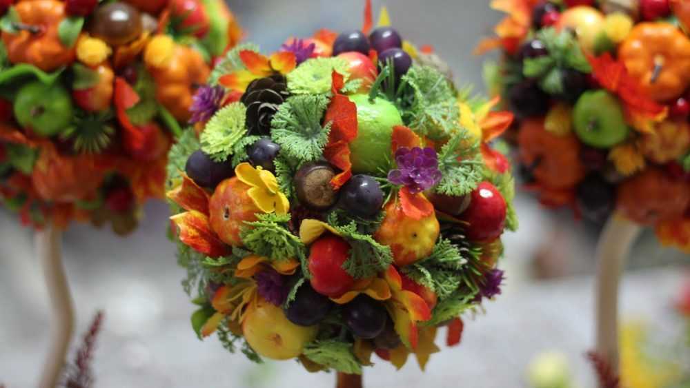Отличной поделкой станет букет из фруктов. Это популярное изделие, которое дополнит традиционный вариант из цветов или с легкостью его заменит.