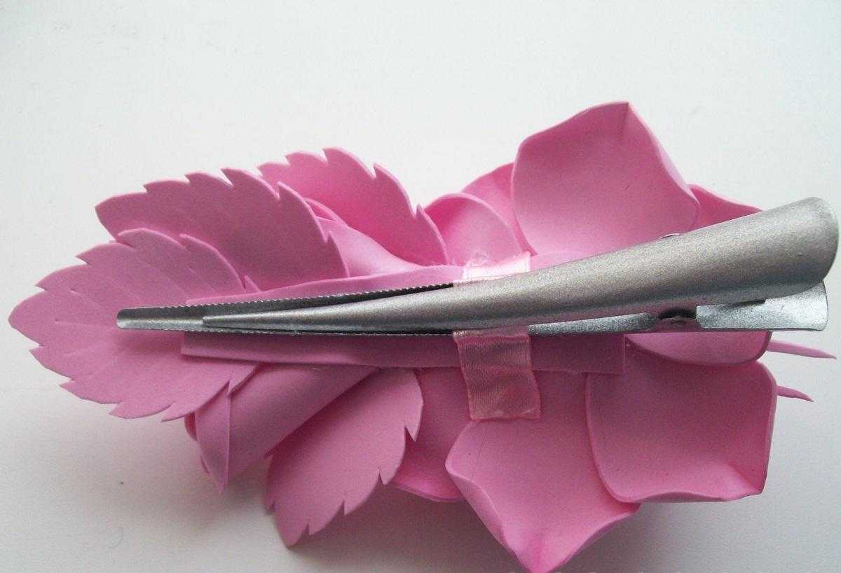 - Заготовок можно сделать несколько и прикрепить к заколке-основанию на горячий клей. Вот и все, красивая детская заколка из фоамирана готова!