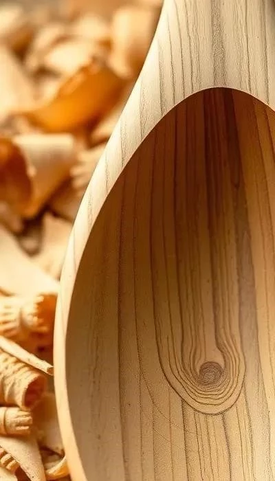 Шаг 3: Детализация. Используйте стамеску для более точной обработки чаши и ручки ложки. Сгладьте неровности и придайте изделию желаемую форму. Будьте осторожны при работе со стамеской, чтобы не пораниться.