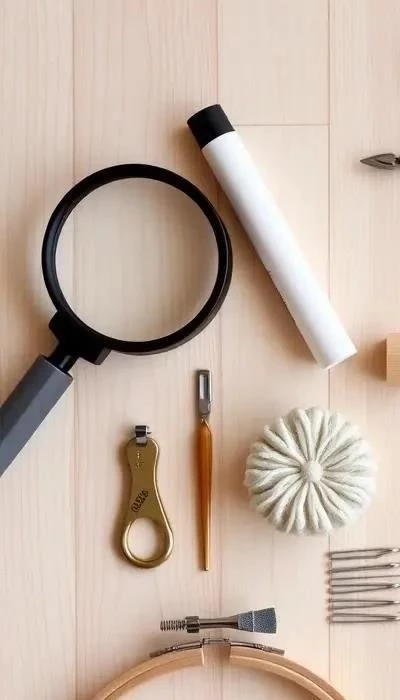 Иглы должны соответствовать толщине ткани и ниток. Для тонких тканей выбирайте иглы с тупым концом, чтобы не повредить волокна. Пяльцы необходимы для натяжения ткани, что обеспечивает ровность и аккуратность швов. Существуют различные типы пялец: деревянные, пластиковые, магнитные. Ножницы должны быть острыми и удобными для обрезания ниток. Маркер для ткани поможет перенести рисунок на ткань, но убедитесь, что он легко смывается или исчезает со временем.