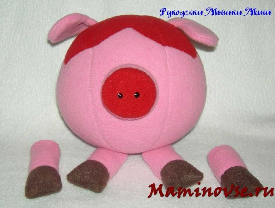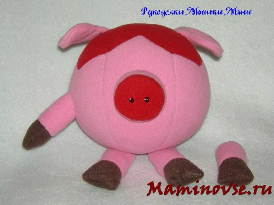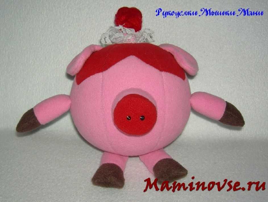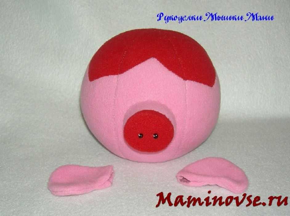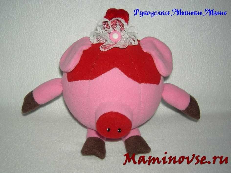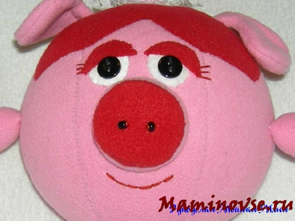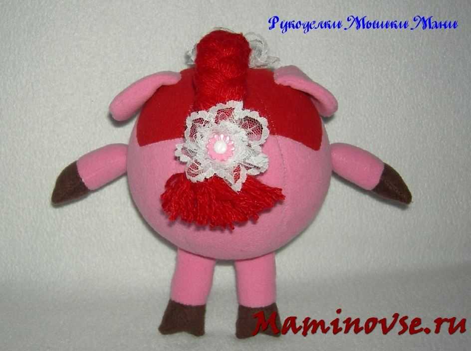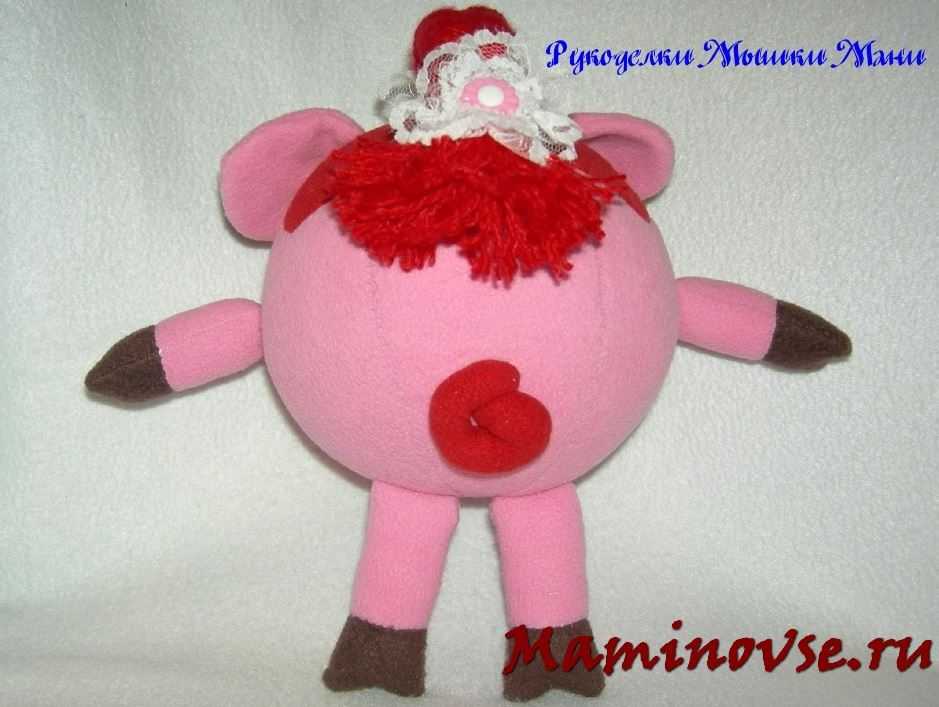 Осталось навести румянец нашей кокетке. Из красного флиса вырезаем сердечки и пришиваем их на мордочку.