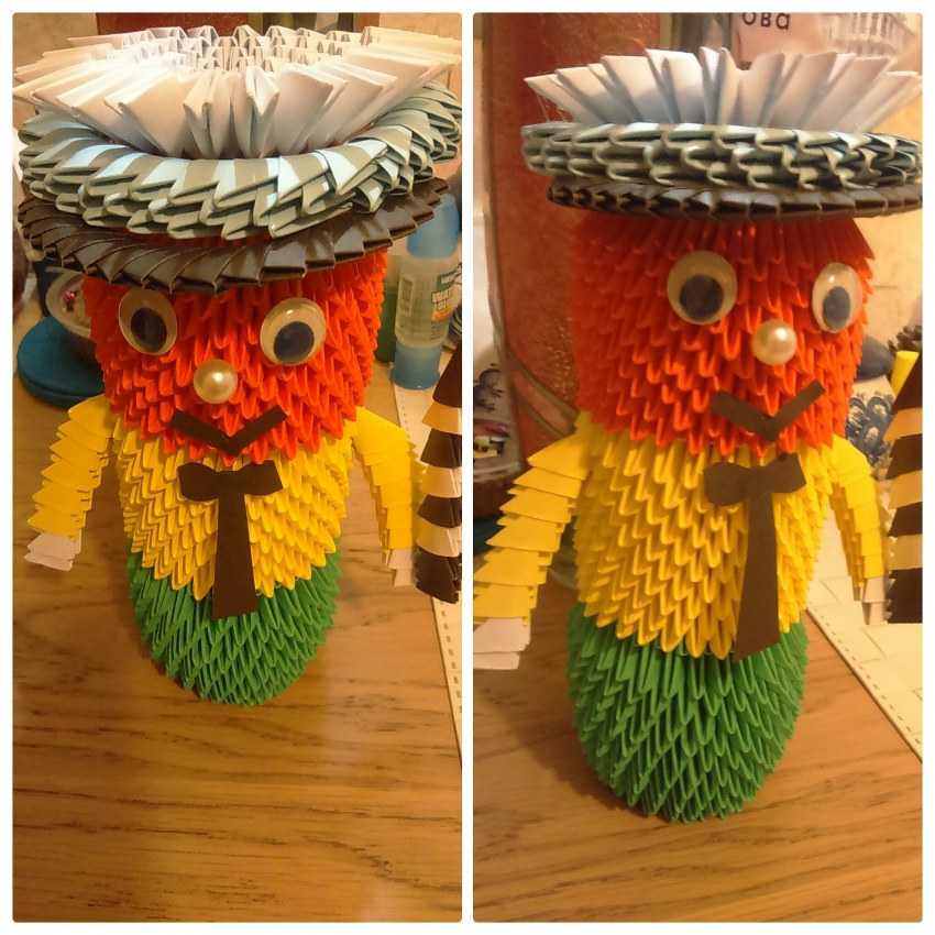 12 ряд — 18 жёлтых модулей вставлять длинными уголками на внешнюю сторону поделки (смотри фото).