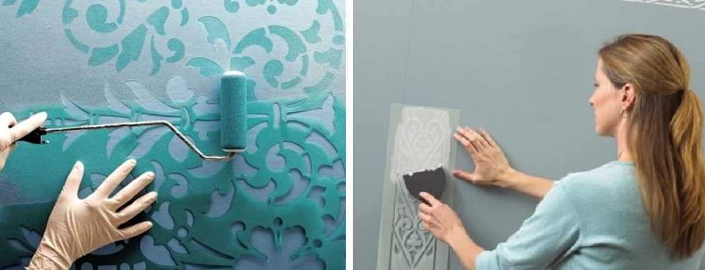 Чтобы трафареты для стен под покраску не двигались, их на стене надо закреплять. Для этого есть специальный клей. Он наносится тонким слоем на обратную сторону трафарета, после чего крепится на стену. После выполнения работ снять его не проблема. Причем, он не повреждает поверхность.