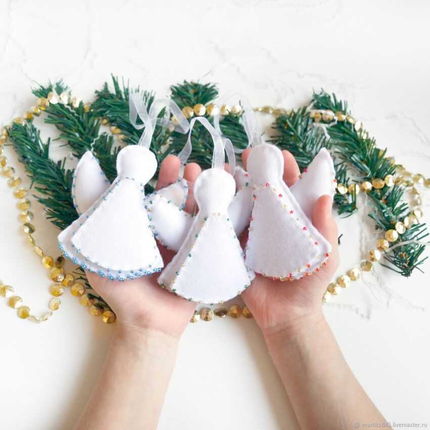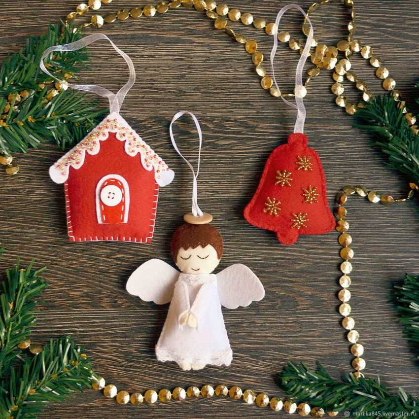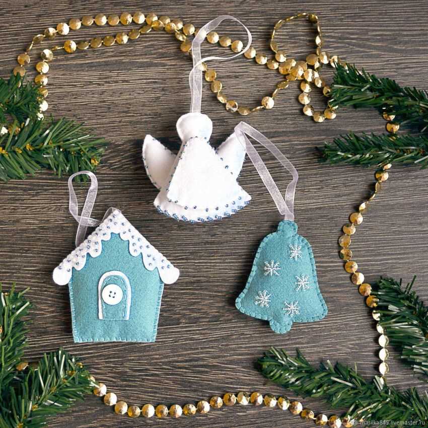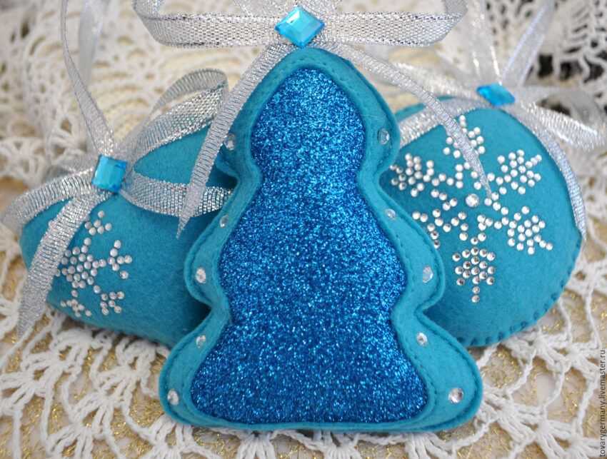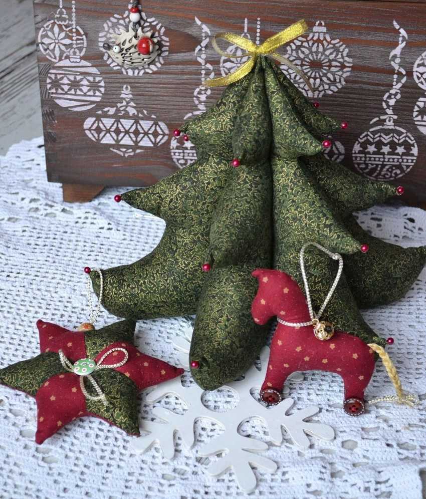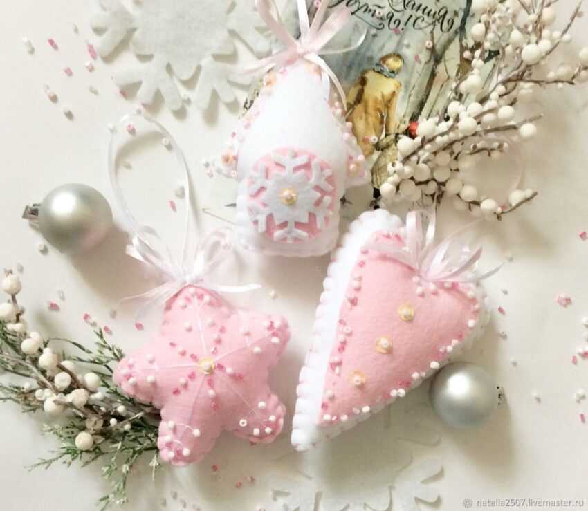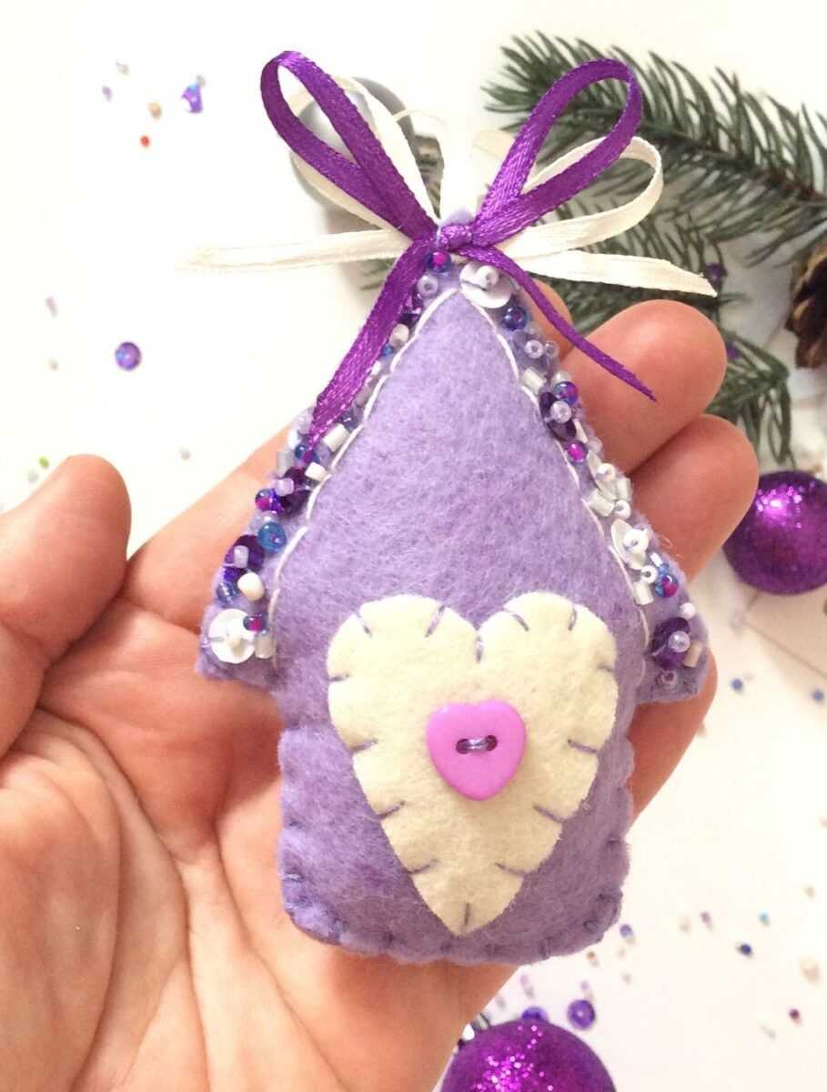Елочки также будут гармонично смотреться из фоамирана. В принципе, все что делают из фетра можно выполнить из фоамирана, даже лучше, ведь у фоамирана есть два преимущества — он держит форму, которую ему задают при нагревании или скручивании, на нем можно делать отпечатки. А значит и елочки могут быть более пушистыми и игрушки более натуральными, помните, как в статье про была печенюшка — сердечко из фоамирана. Делать ее очень просто, а выглядит съедобно.