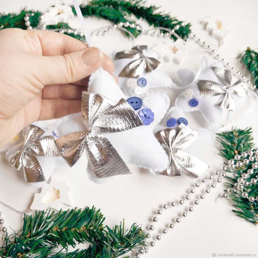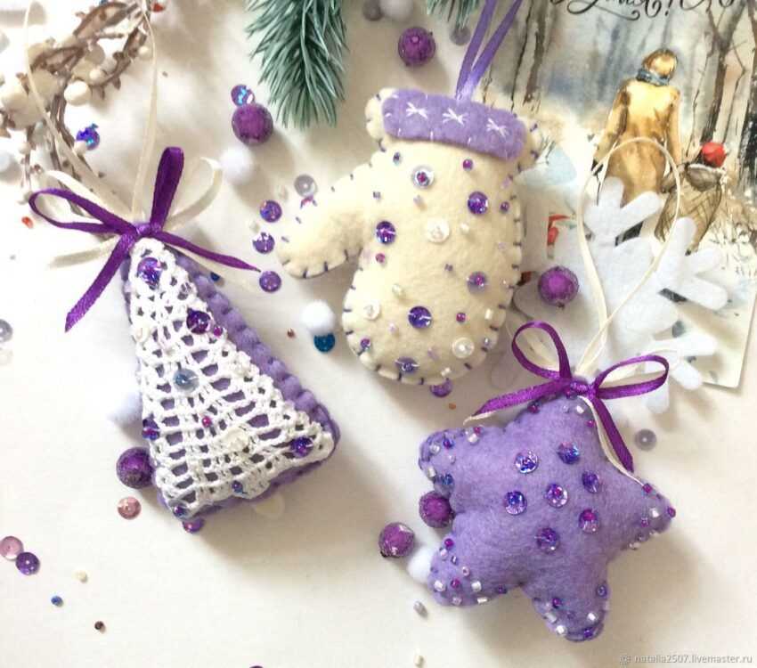 Сшивая элементы делают самые разнообразные игрушки: плоские, объемные. Достаточно сделать к ним крепление, и можно украшать новогоднюю Елку.