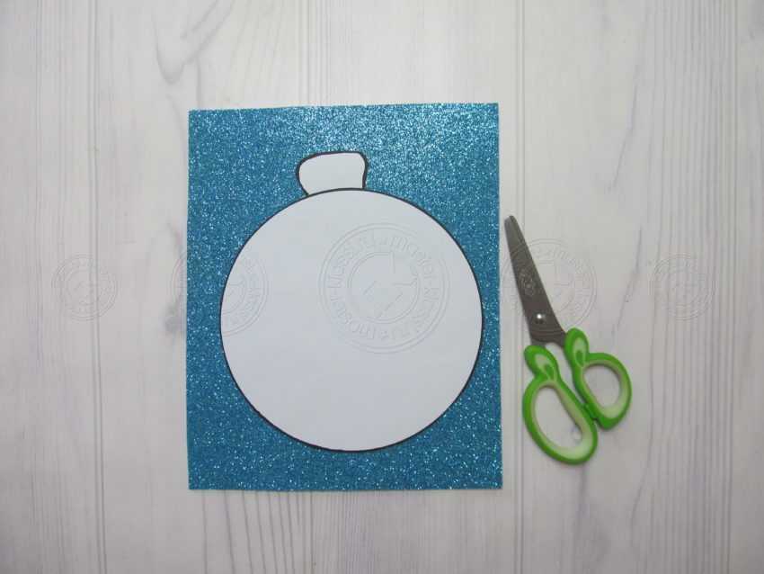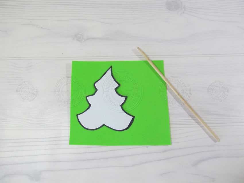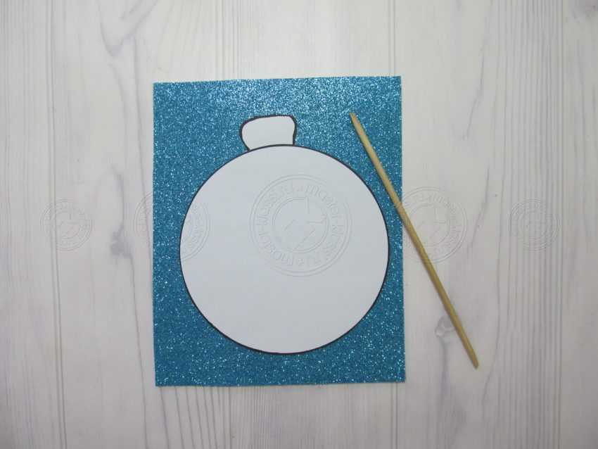 5. Разместив на нем шаблон елочной игрушки обведите его шпажкой. Если вы ей не располагаете, то подойдет в качестве замены палочка от суши или ручка, у которой кончились чернила. Отличительная особенность пористой резины в том, что мы в праве использовать ее физические свойства если хотим обозначить контур. Ручка на таком листе может плохо проводить линии.