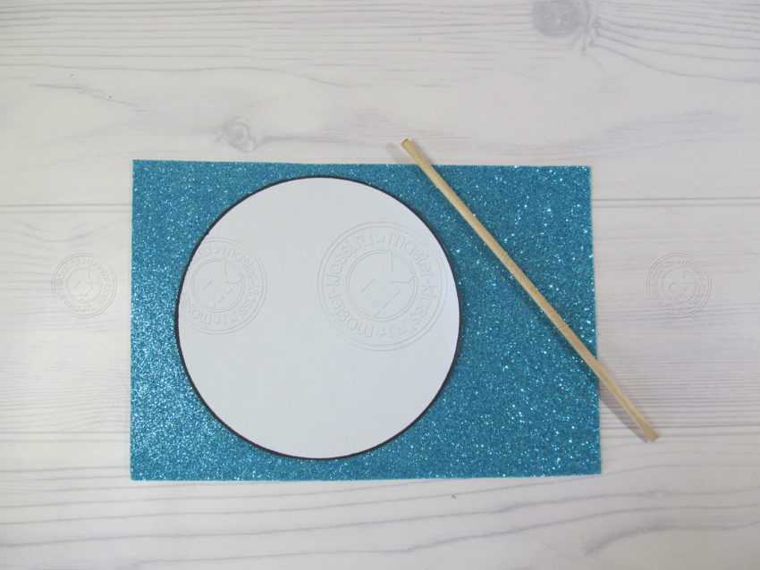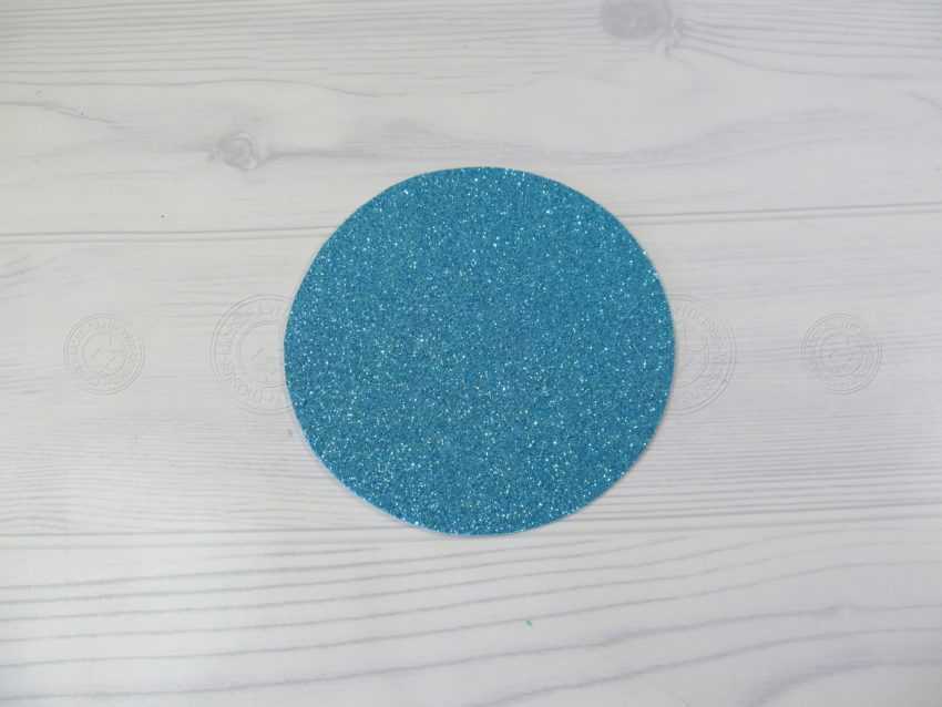 Пока бокал подсыхает берем диск и синий фоамиран, вырезаем 2 круга.Один по размеру диска, чтобы заклеить диск с обратной стороны. Второй чуть больше дырочки на диске диаметром 3,5 см., чтобы заклеить дырку.