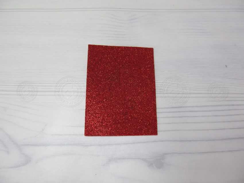 - Расчертите зубочисткой лист фоамирана на одинаковые полосы. Одну из них отложите на время в сторону, а остальные своими руками разрежьте на одинаковые квадраты. Размер устанавливайте сами, исходя из величины конуса из пенопласта. Для конуса высотой 20 см ширина полоски, а следовательно и размер стороны квадрата может быть примерно 3-4 см.