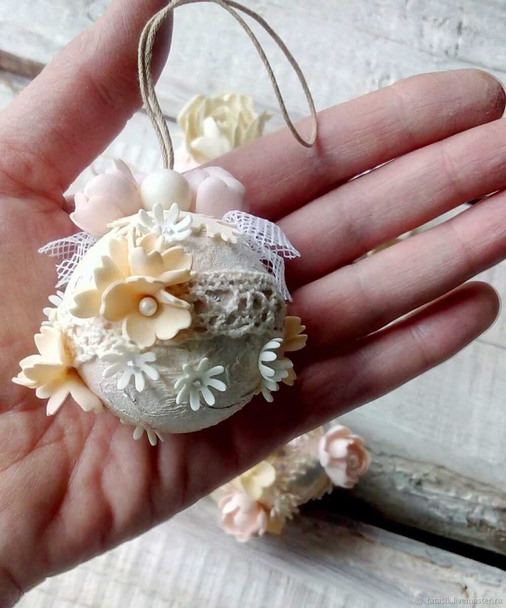 Ждем полного высыхания. Затем прокалываем шарик и извлекаем. Получаем вот такие красивые ажурные шары, которые можно повесить на новогоднее деревце, продев бечевку или нить.