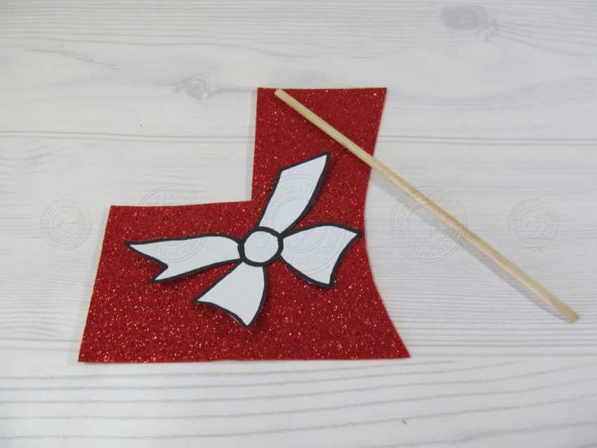 19. Поделка почти готова и нам необходимо заняться ее декорированием. Прикрепим к нижней части серебряные листочки.