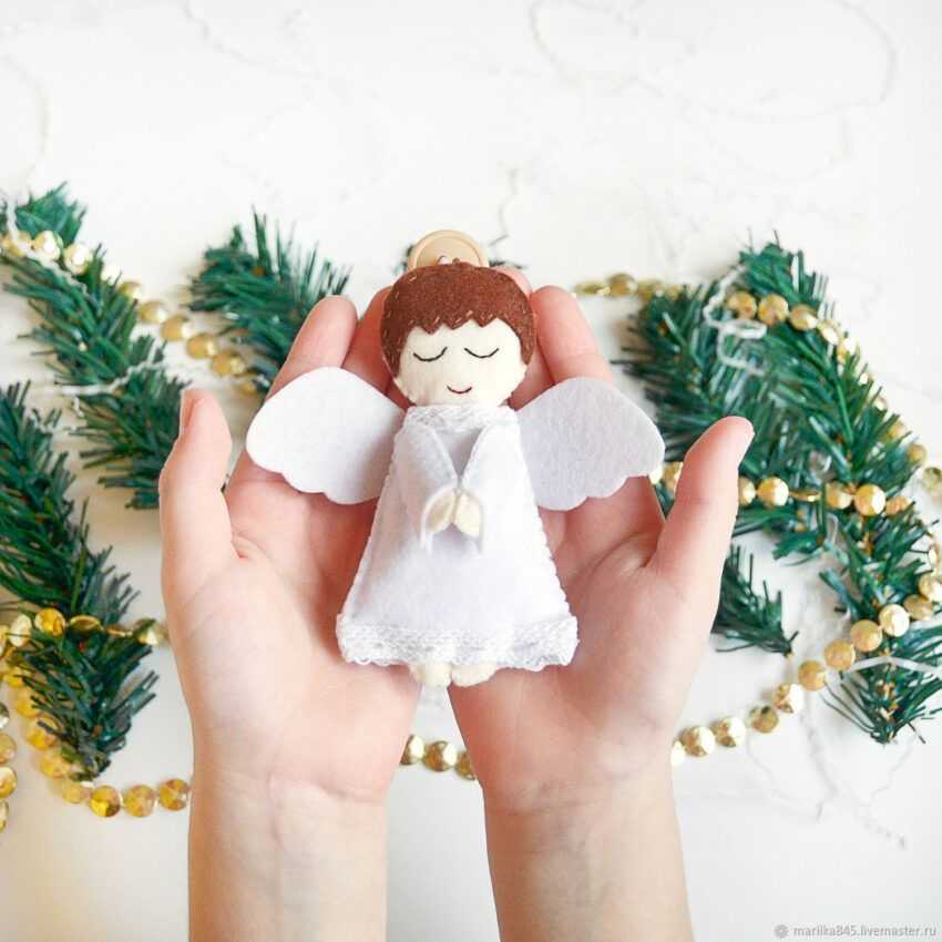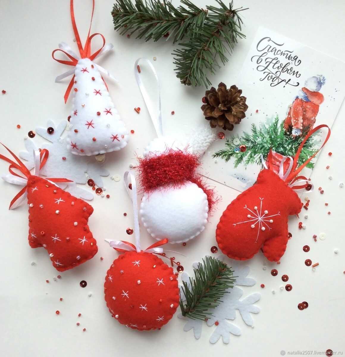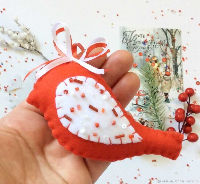 20. Сверху, прямо на них мы приклеим ягодки и наша поделка завершена. Если вам необходимо, то сзади присоедините петлю из нитки и повесьте ее на елку.