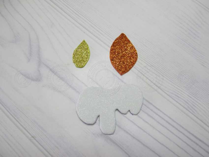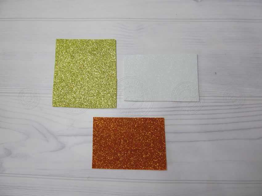 12. Далее нам необходимо подготовить белый, желтый и оранжевый глитерный фоамиран.