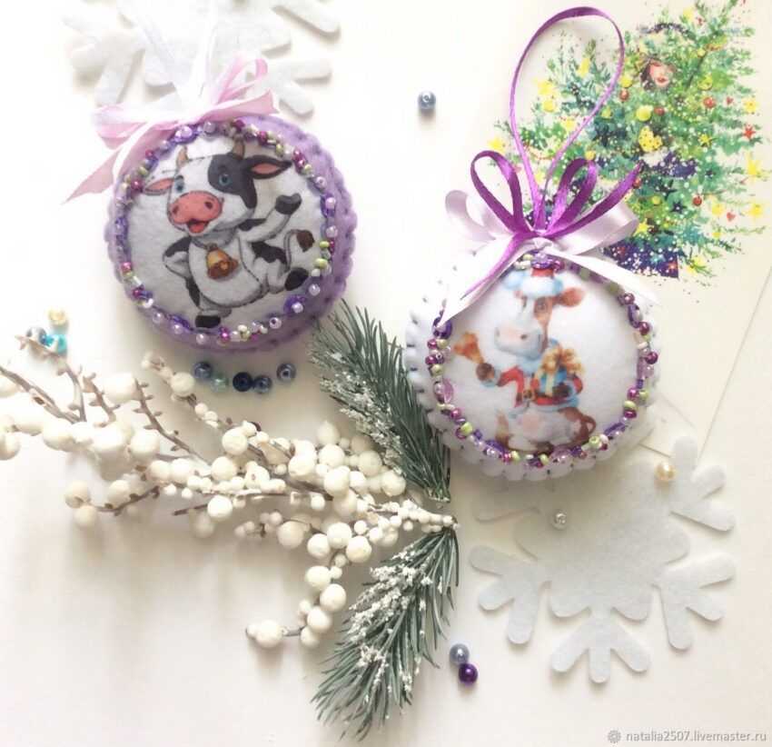А это символ ушедшего года — Бык, который может пополнить новогоднее деревце елочными украшениями из фанеры.